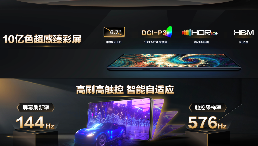 具体moto edge X30主要参数有:6.67英寸FHD+分辨率的OLED居中单挖孔OLED柔性直屏,侧边指纹,144Hz屏幕刷新率,最高576Hz多指触控采样率,支持DC调光;