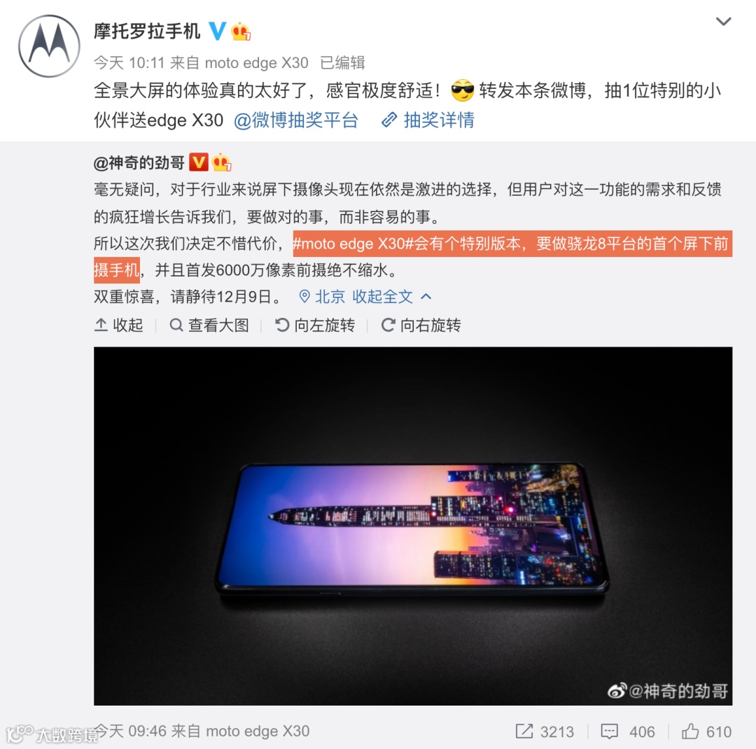 首款骁龙8 Gen1旗舰摩托罗拉edge X30将于12月9日19:30正式发布,没想到除了曝光的常规版本外,还有一个特殊版本。