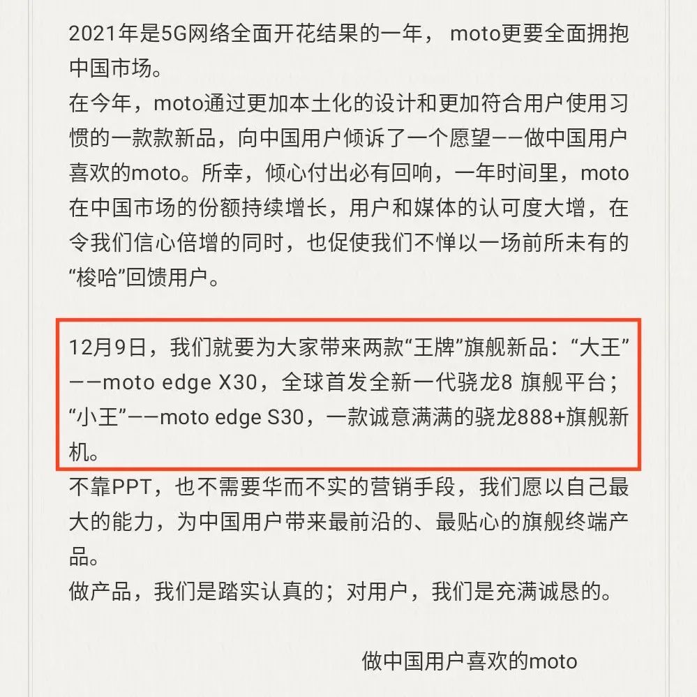 而除了摩托罗拉edge X30/X30屏下摄像版外,12月9日还将发布一款搭载骁龙888 Plus的摩托罗拉edge S30。