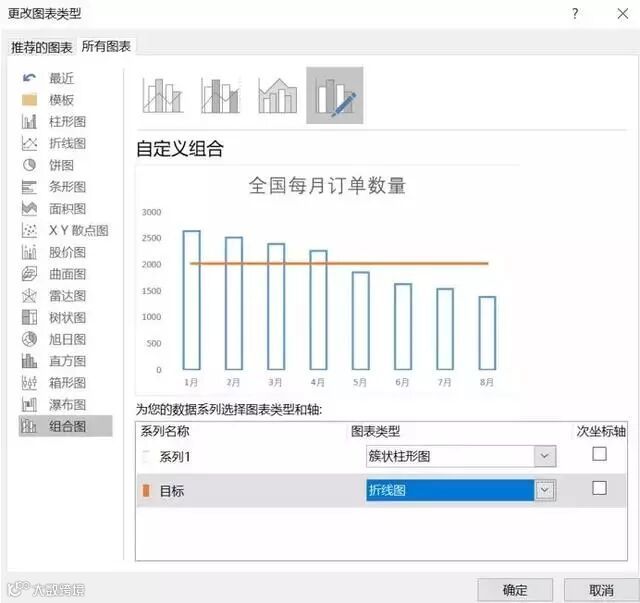 要与目标值进行对比,必不可少的就是目标值线。在Excel里怎样才能在图表区加上目标值线呢?