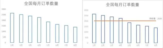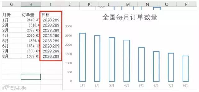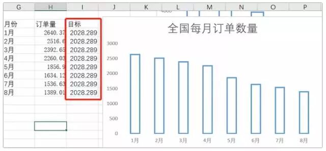 Step1:首先,在I列新增一列1~8月订单量的目标值。
