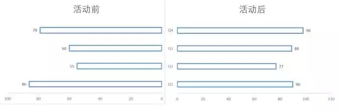 当前时期与特定时期的对比,如与历史最好水平或与某一关键的时期进行对比。下图是从推广活动开始前和开始后各季度的平均销售额进行对比的条形图。