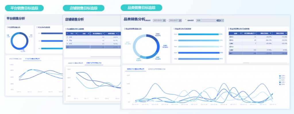 传统表格在数据量不大时足够好用,但当涉及多渠道、多维度、多时间段的对比分析时,Excel 或传统 ERP 报表往往显得笨重。 在这里,类似 九数云 BI 这样的可视化分析工具就能发挥巨大作用: