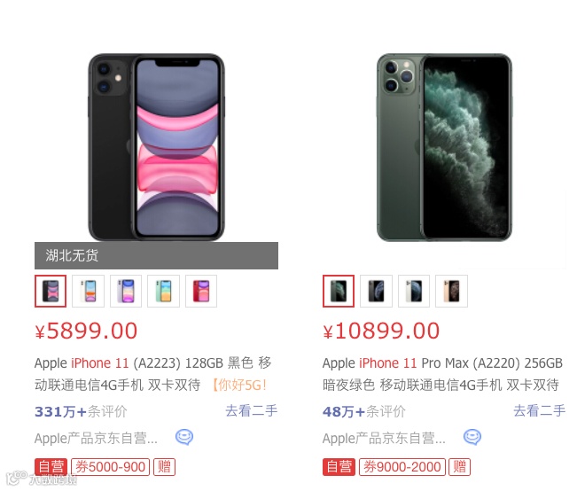 作为补充,iPhone12系列发布后,苹果官网已经下架了iPhone 11 Pro和iPhone 11 Pro Max,而iPhone 11和iPhone XR仍在售。而京东自营这边11 Pro Max仍在售。iPhone 11 上市一年,目前京东自营的用户评价量达 331W+ ,明年这个时候 iPhone 12 的评价量估计也是几百万的水平?🤔
