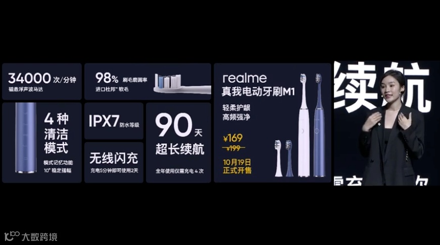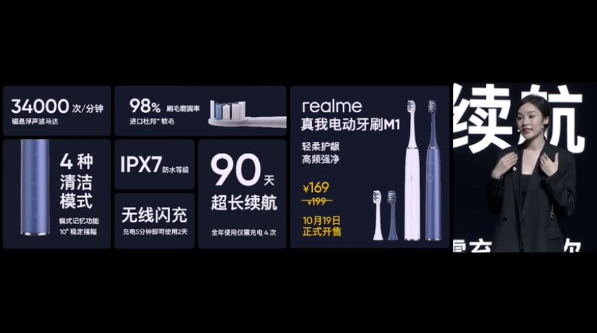 ④realme 电动牙刷 M1 售价 199 元,首发特惠 169 元,将于10月19日正式开售。