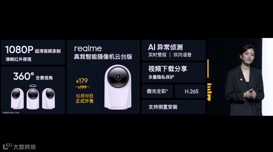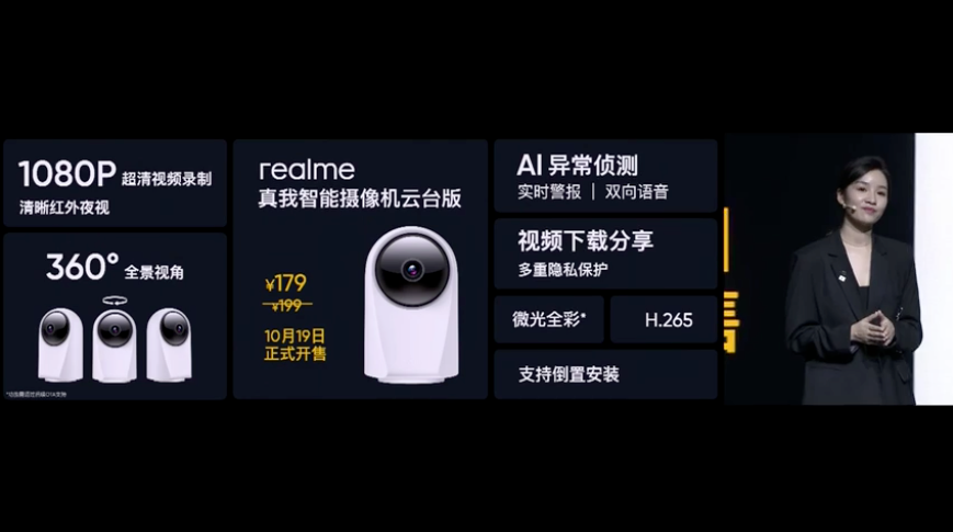 ⑤realme 智能摄像机云台版 售价 199 元,首发 179 元 ,将于10月19日正式开售。