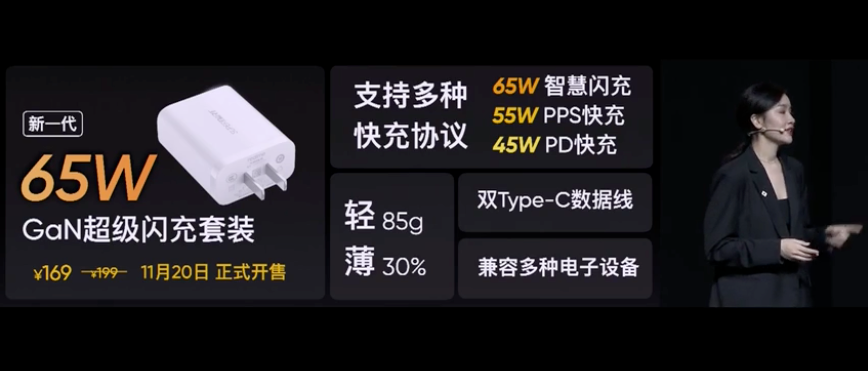 ③realme 65W GaNg超级闪充套装,售价199元,首发特惠169元,将于11月20日正式开售。支持多种快充协议,C To C 口,最高兼容 45W PD快充。算是看明白了,一加算是欧加家族里地位最低的?快充这方面啥都被弟弟抢发![[偷笑]](https://cdn.10100.com/content/20251207/aab17069-e0ce-4fb9-9fdb-343eacc346ad.png?x-oss-process=style/wmlogo)