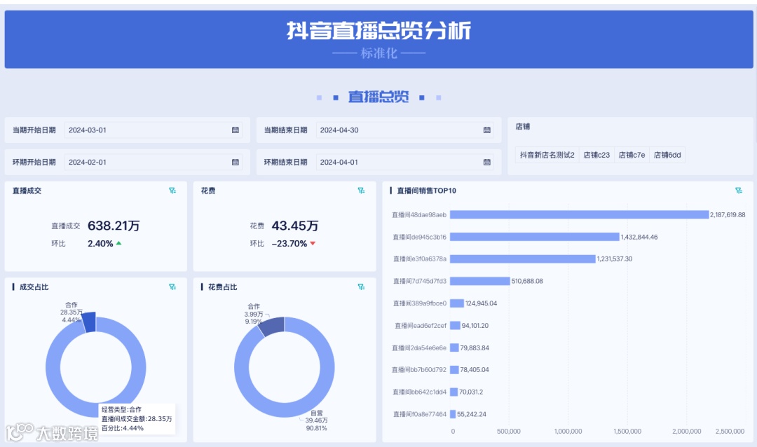 常用场景:直播带货复盘、热卖商品成交漏斗、粉丝分层分析;