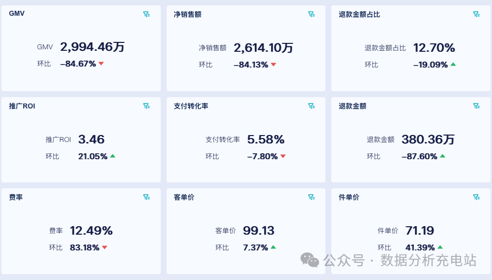 销售额(GMV):最直观的核心指标,反映了平台或店铺的总销售业绩。