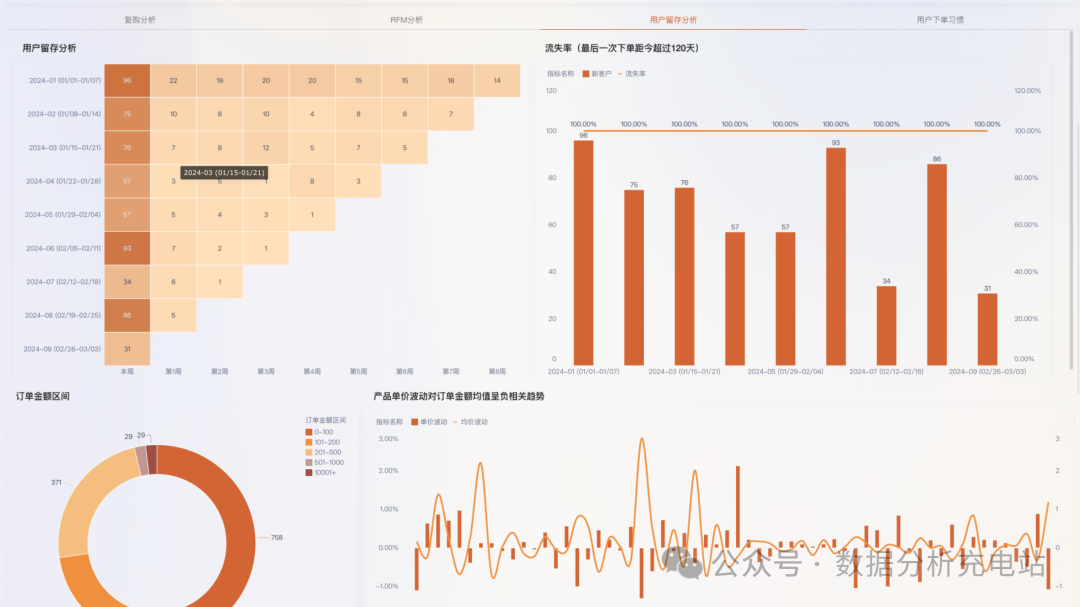 客单价(AOV):即每个订单的平均销售额,反映了每个顾客的购买能力。