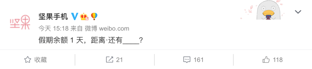 小长假最后一天,工作党们已经开始提前准备开工活动了,坚果手机官博也不例外。