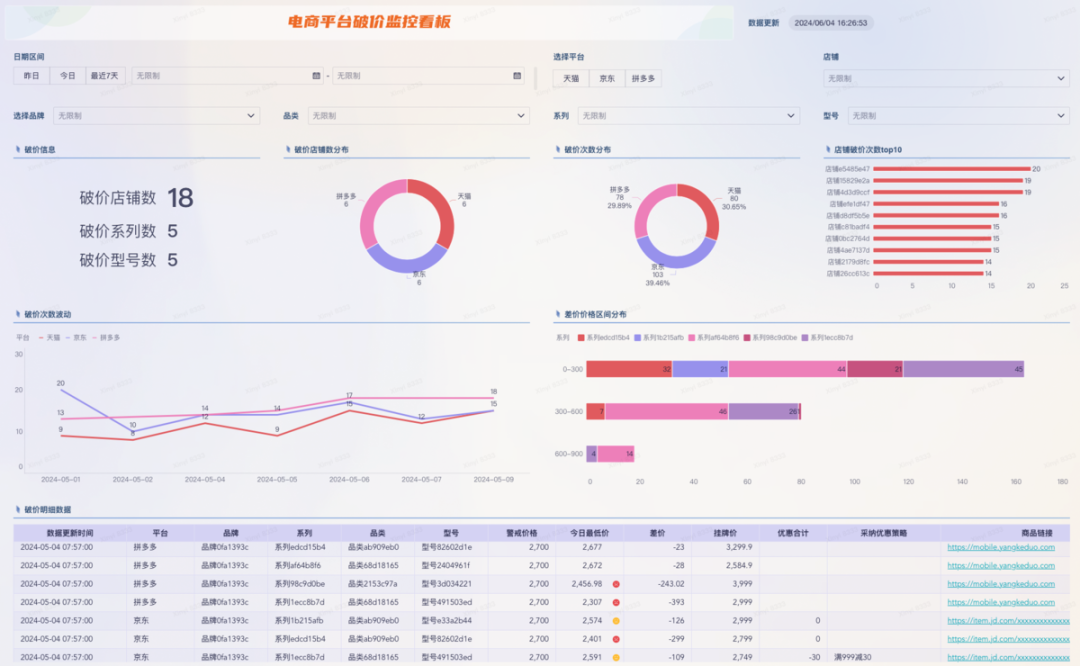 “商品乱价”和“商品破价”会干扰品牌的市场策略与线下渠道秩序,对公司、经销商盈利造成不利影响,需要进行破价监控。