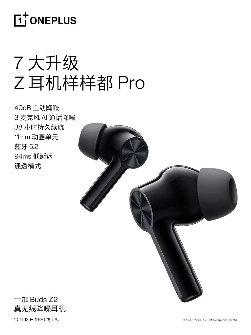 Buds Z2,官方介绍相比上代Buds Z有7大升级:①不支持降噪→40dB主动降噪;②2Mic→3Mic AI通话降噪;③20h→38h续航;④103ms →94ms低延迟;⑤10mm→11mm动圈单元;⑥蓝牙5.0→蓝牙5.2;⑦不支持→支持通透模式。就看价格如何了。