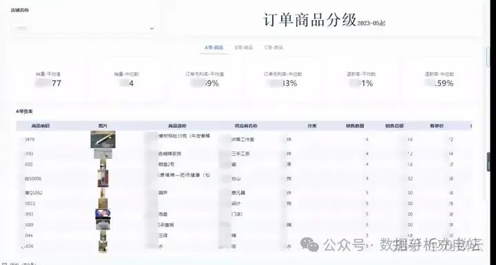 根据销量,订单毛率,退款率 维度,企业把根据订单情况将产品分为ABC三类,根据不同的销售策略 选取商品。例如: