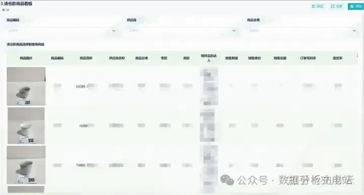 通过制作清仓款商品看板,针对不同的产品制定更多机制和政策,比如成本压缩、买一赠二等,加快清仓速度。
