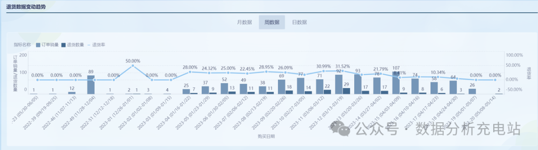 退货件数和退货金额是分析退货率的基础数据。通过细分以下指标,可以更精准地衡量退货对销售的影响: