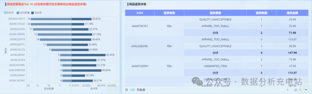 通过分析退货商品,可以帮助商家识别出退货率较高的商品类型或单品,从而优化商品选品和供应链管理: