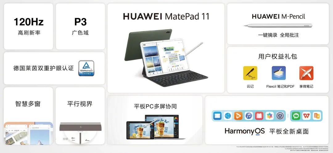 华为MatePad 11 夏日胡杨·6+256GB WiFi版售价3299元;华为Watch Fit售价799元;华为氮化镓超薄充电器最大66W售价299元,目前已经开启预售,将于9月29日上午10:08正式开售。