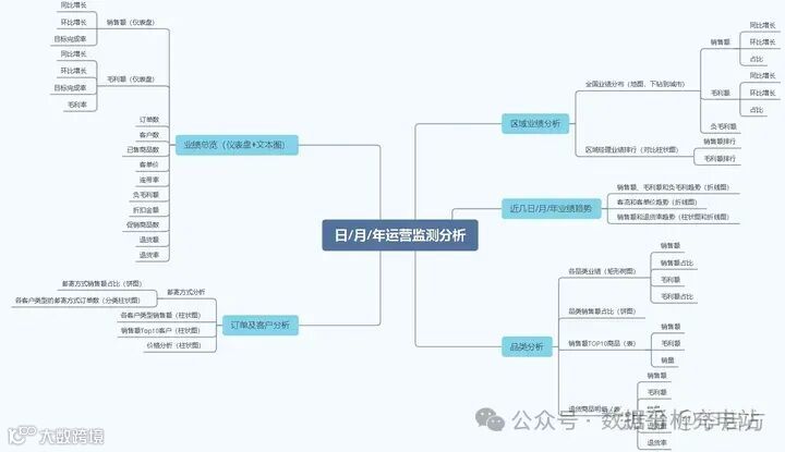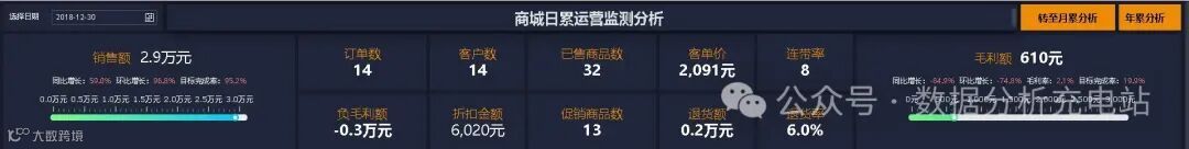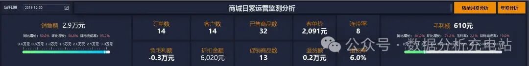 重点关注指标:销售额(同比、环比、完成率)、毛利额(同比、环比、完成率、毛利率