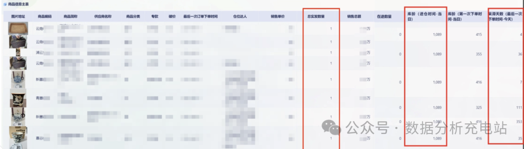 无效商品可以通过库龄、呆滞时间、销售数量等维度来进行识别: