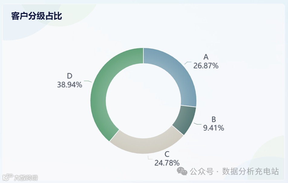 客户分析第一步是进行客户分级,即根据客户对于企业的贡献率等指标进行衡量与分级。