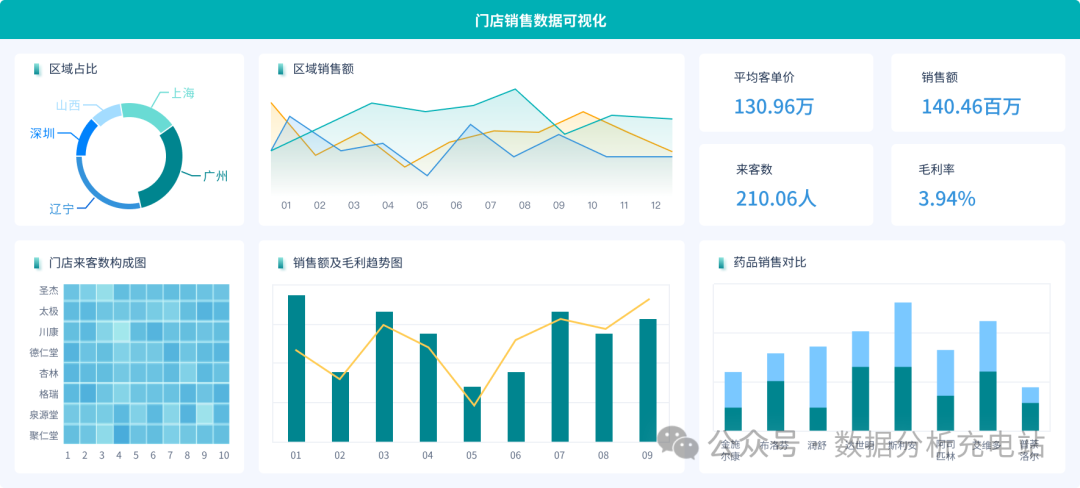 介绍:FineBI是帆软推出的一款商业化图表工具,在商业场合很适合用!类似Excel的操作模式,有传统的、高级的各类图表,还可以自定义开发图表。