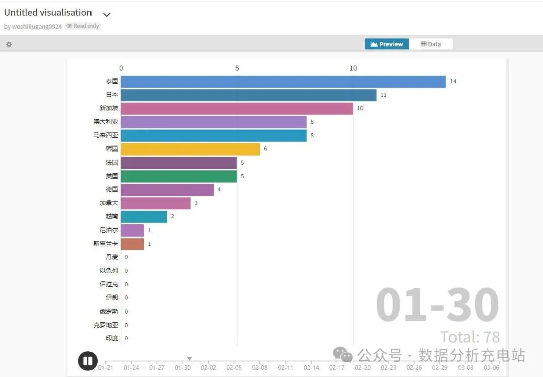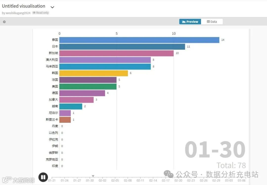 介绍:Flourish是一个在线的flash图表网站,可以生成动态的图表~这个网站里提供了非常多的数据可视化模板,将数据导入到模板里,设置好相应的速度、颜色、图标等信息就完成了。