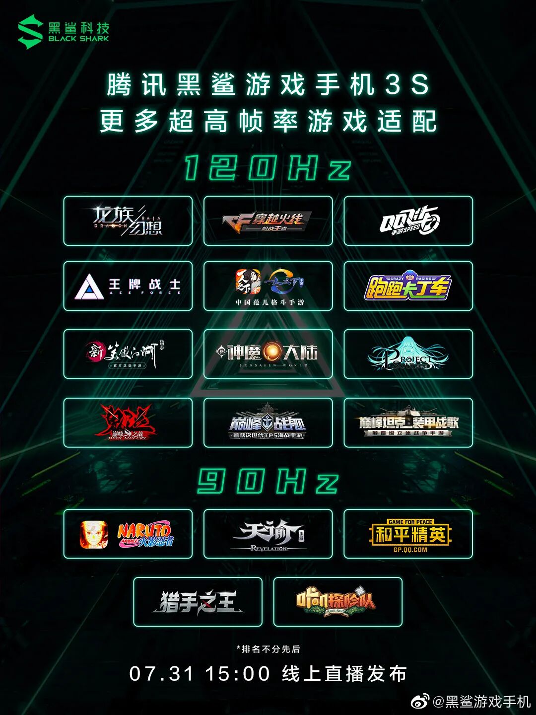 今天上午,黑鲨新一代游戏手机——腾讯黑鲨3S正式宣布了发布时间:将于7月31日15:00 发布。