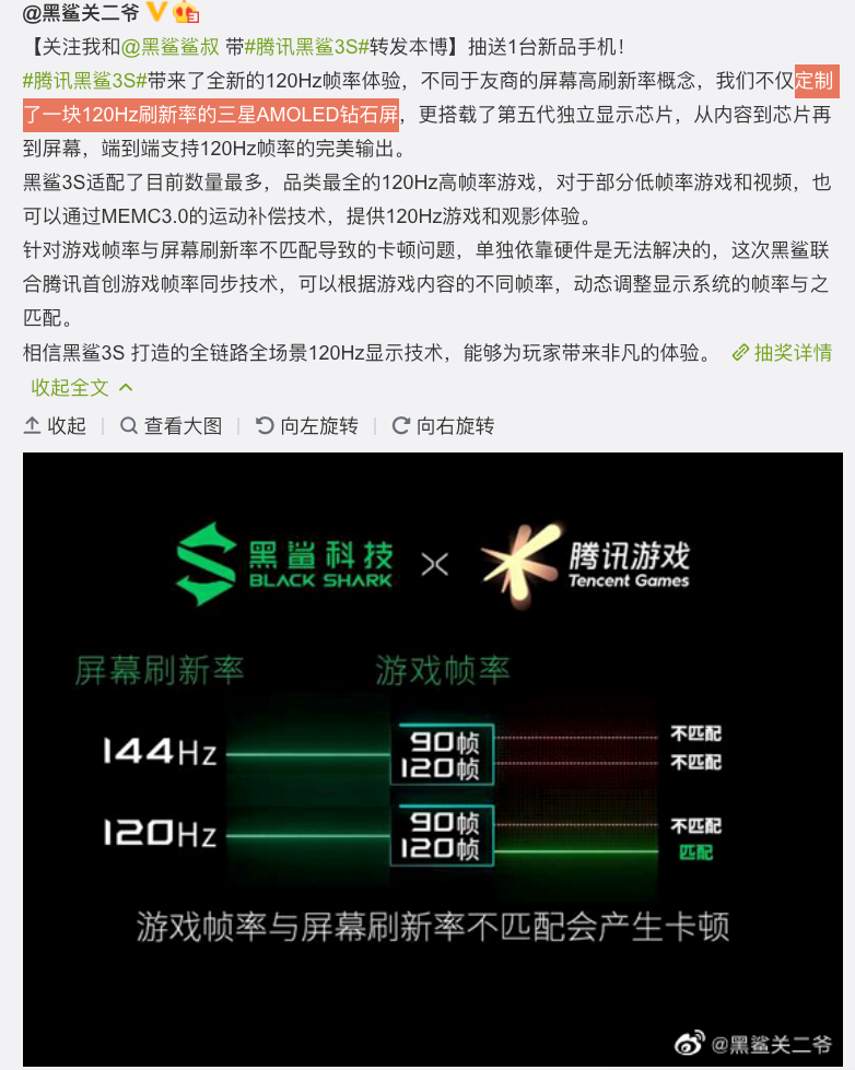 除此之外,黑鲨3S还预热目前已解锁众多120Hz&90Hz高帧率游戏:QQ飞车、CFM、王牌战士、一人之下、龙族幻想、跑跑卡丁车、新笑傲江湖、新神魔大陆、代号:灵、鬼泣-巅峰之战、巅峰战舰、巅峰坦克:装甲战歌;火影忍者、咔叽探险队、和平精英、猎手之王、天谕等热门游戏。其也是目前腾讯战略合作的第二家游戏手机品牌,上一个是ROG。