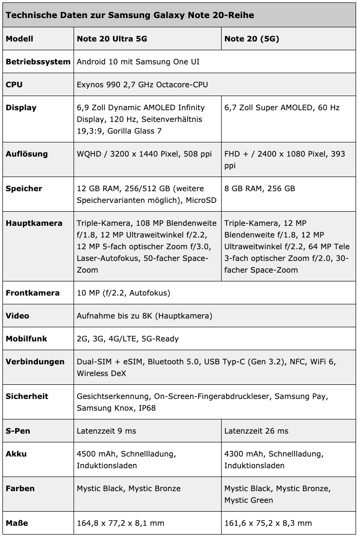 星Note 20标准版的所有信息也来了。