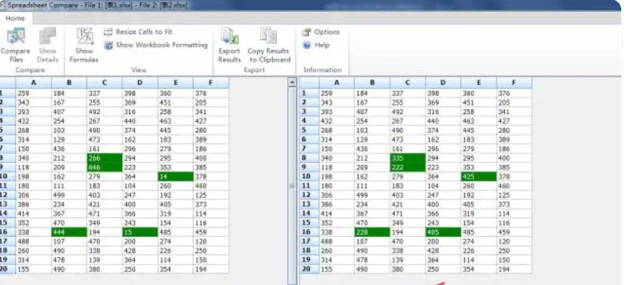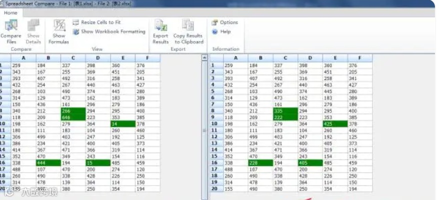 Excel内置了比较工具,可以用于比较差异。打开要比较的两个Excel文件,点击“文件”下拉菜单,选中“合并工作簿”,弹出合并工作簿窗口,选择“比较”选项卡,在选择要比较的数据范围并勾选“显示单元格的字体颜色”,最后点击“合并”,系统会自动比较出两个文件中不同的地方。