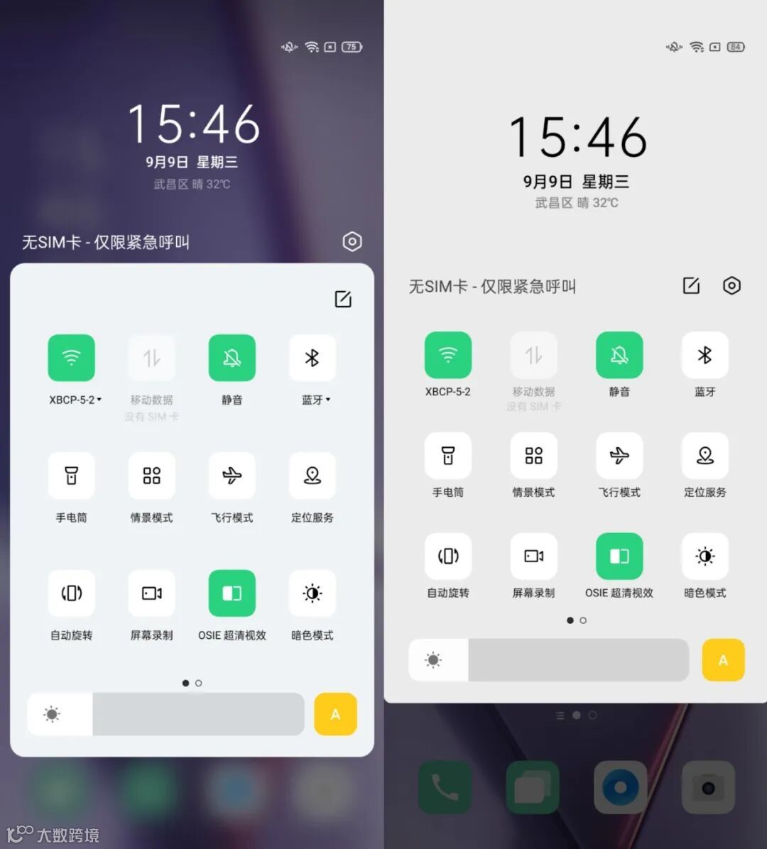 上图左侧为ColorOS 11 右侧为ColorOS 7。视觉上,可以看到ColorOS 11的下拉通知栏整个界面更加舒适。更多细节还有待小白进一步体验,现在也需要等待9月24日官方发布会进行详细介绍。