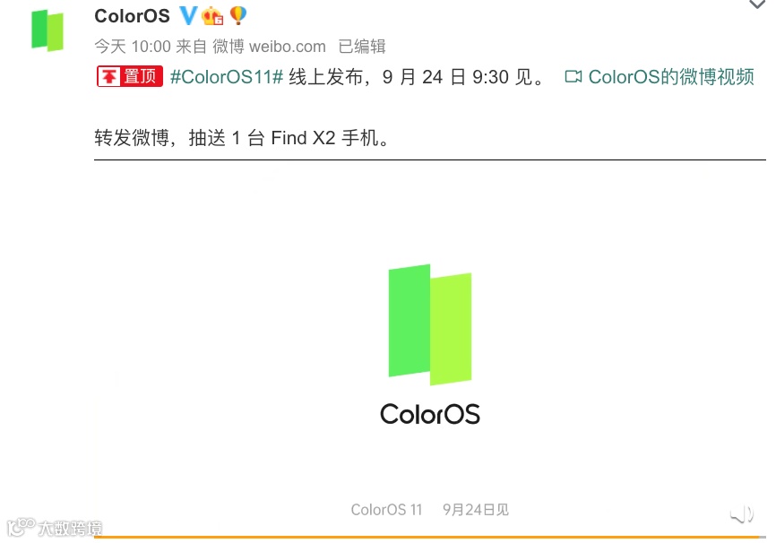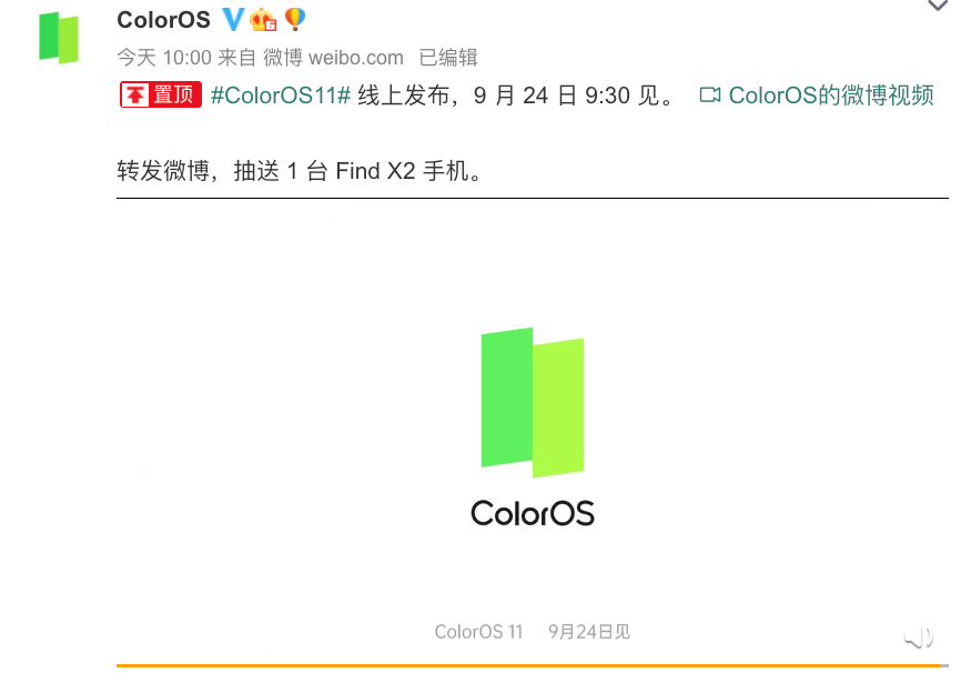 今天上午,OPPO正式宣布全新ColorOS 11将于9月24日上午9:30线上发布。