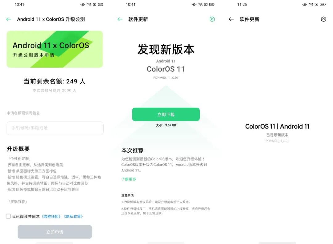 值得一提的是,就在前几天OPPO曾面向OPPO Ace 2系列用户和OPPO Find X2系列用户开启公测版招募,小白早上去看的时候Ace2机型还有一些名额,还好顺利申请到了, 所以也简单提前体验下「基于Android 11的ColorOS 11」。