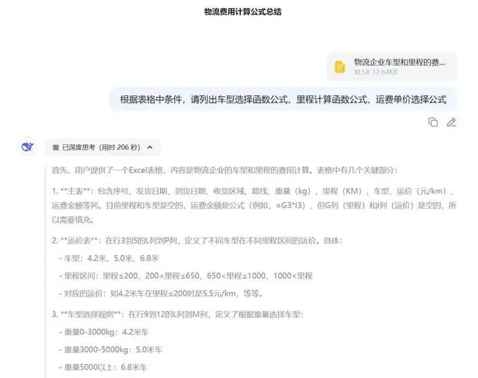 我们在DeepSeek中上传有上面条件及需要列出函数的表格,并具体提问: