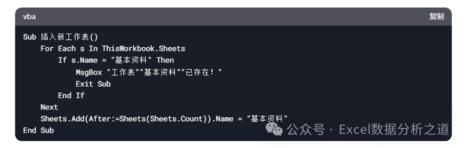 任务:请设计一个简洁的插入新工作表的VBA代码