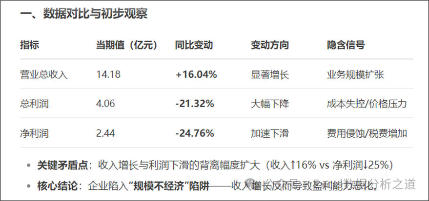 例如,由于收入增长与利润下降的"剪刀差"现象,这种情况通常指向“增收不增利”的经营困境。