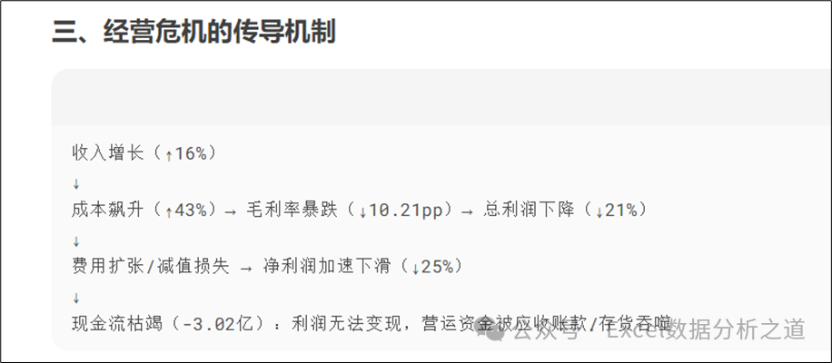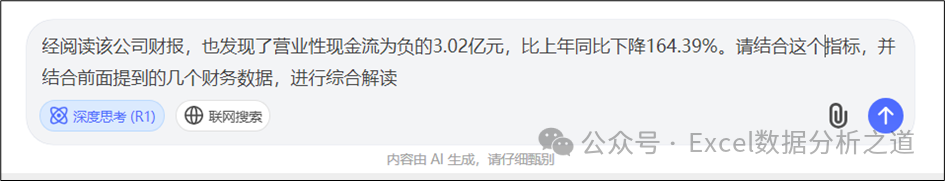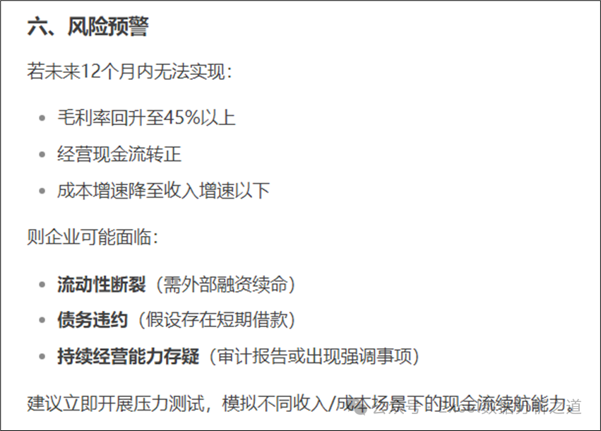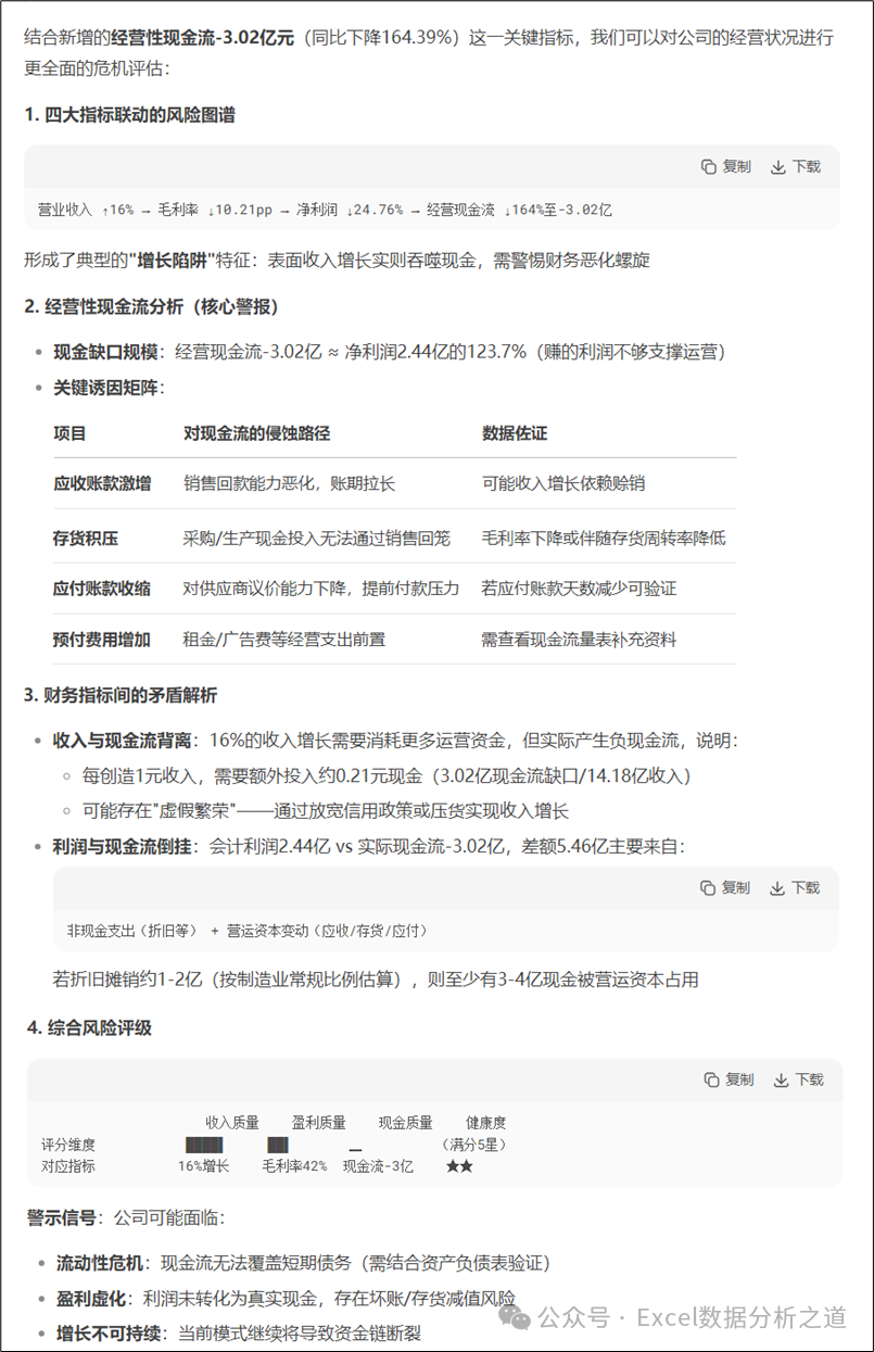 DeepSeek结合新增的经营性现金流-3.02亿元(同比下降164.39%)这一关键指标,对公司的经营状况进行更全面的危机评估。