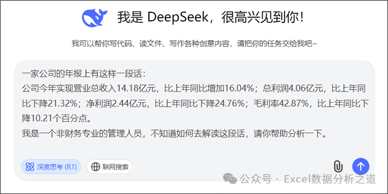 我们可以借助DeepSeek的深度思考模型,借助DeepSeek的强大逻辑思考能力,帮助我们来分析这段话。