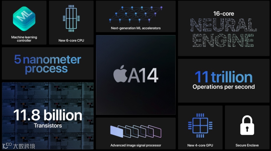 首先回顾下规格,苹果发布会上,官方表示iPad Air 4首发A14仿生处理器,基于台积电5nm工艺制程,全新六核设计(2大核+4小核),官方表示相比上代CPU性能提升40%,16核神经网络单元,机器学习能力提升2倍,GPU性能提升30%。