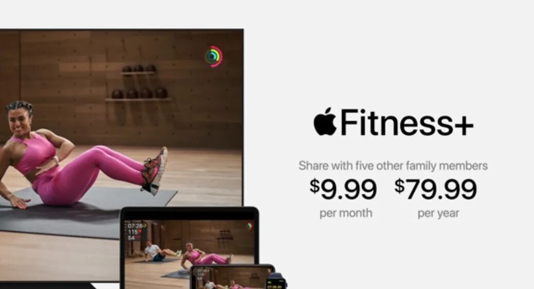 此外,Apple Watch还宣布推出健身服务 Apple Fitness+,佩戴Apple Watch打开屏幕(iPhone/iPad/Apple TV),跟教练一起锻炼,手表实时监测运动状态,目前支持10种运动,抢Keep和健身环的用户?(该服务收费,9.99美元/月,79.99美元/年,将在年底正式上线,首批没有中国,购买新款Apple Watch可享受免费三个月 )