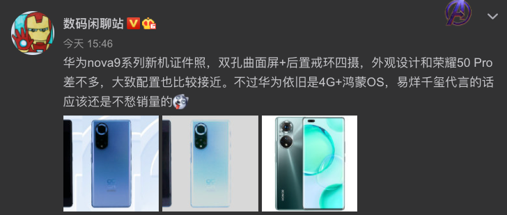 华为P50系列发布后,据了解华为nova 9系列也在路上了。