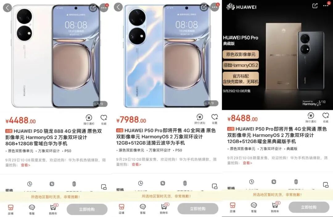 今天上午10:08,之前在华为P50系列发布会上预热过的华为三款新机正式开售。