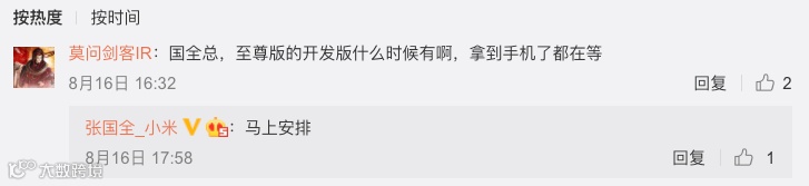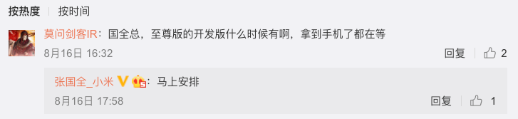 另外,该负责人还表示至尊版的开发版马上安排,相关用户可以期待下。