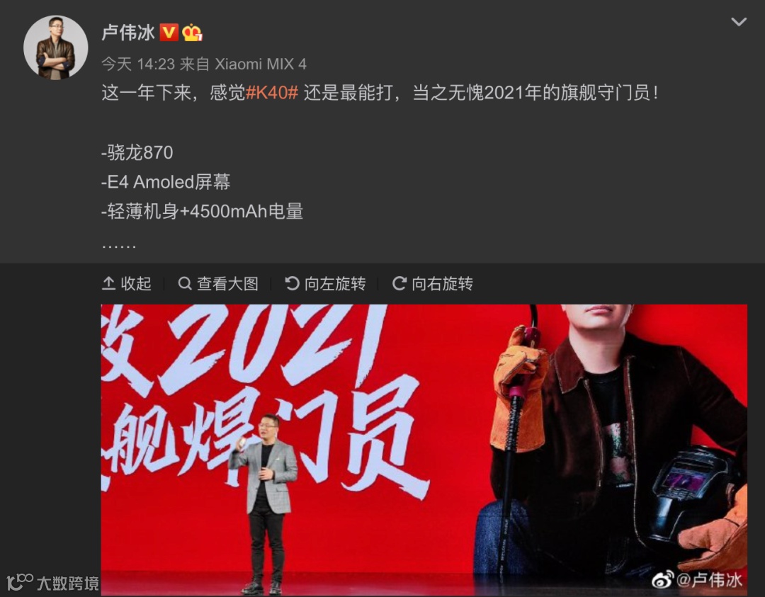 随后卢伟冰也在微博再度宣传起了Redmi K40。这俩动作下来,一时间还真不清楚传闻中的Redmi K40S到底打算啥时候发布...如果是欲扬先抑,早的话估计本月中下旬发布刚好赶上双11首销?🤔