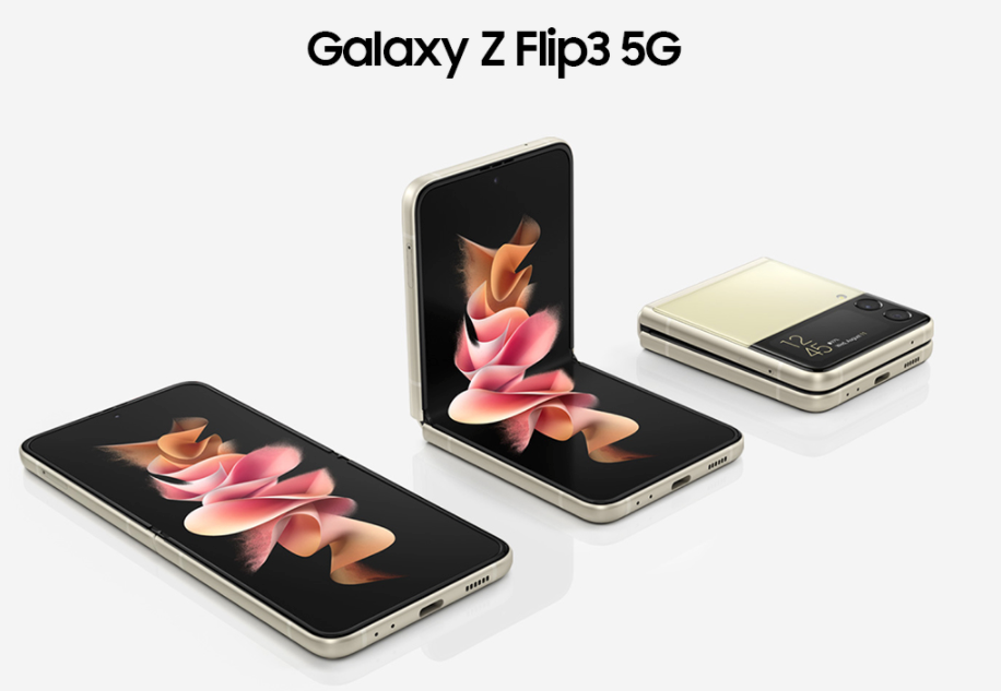 三星Galaxy Z Flip3:内屏为6.7英寸2640*1080分辨率120Hz自适应屏幕刷新率、425ppi的Dynamic AMOLED 2X屏,第三代三星UTG超薄柔性玻璃,侧边指纹;外屏1.9英寸260*512分辨率,用于显示通知等信息;前后面板均为康宁大猩猩Victus,侧边指纹,机身三围166*72.2*厚6.9mm,重183g;提供月光香槟(金)、陨石海岸(黑)、夏夜森林(绿)、梦境极光(紫)4个配色;