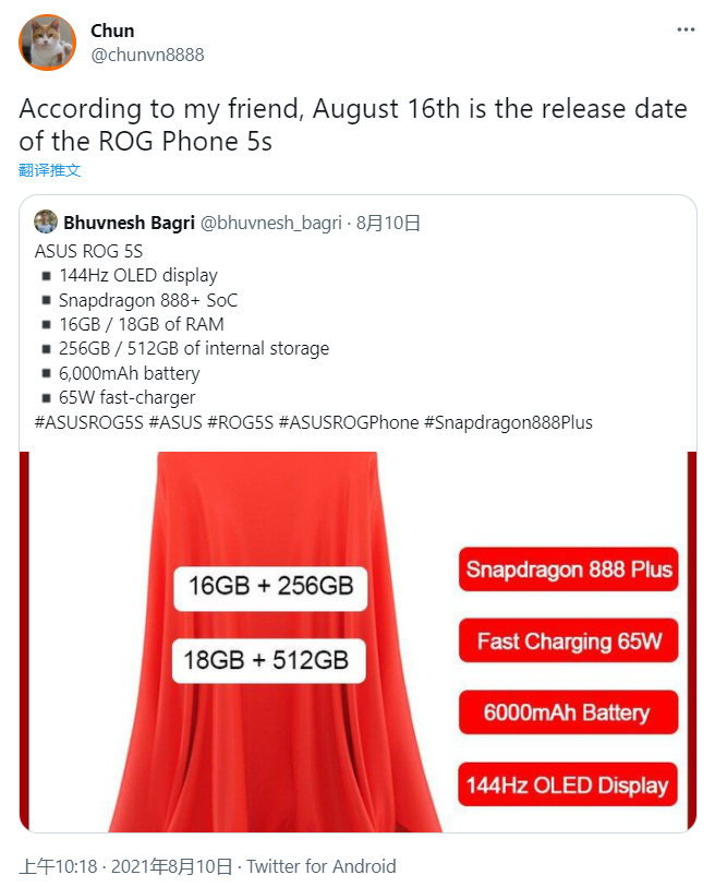 【新机】ROG5S曝或于8.16发布 换芯骁龙888Plus升级不大