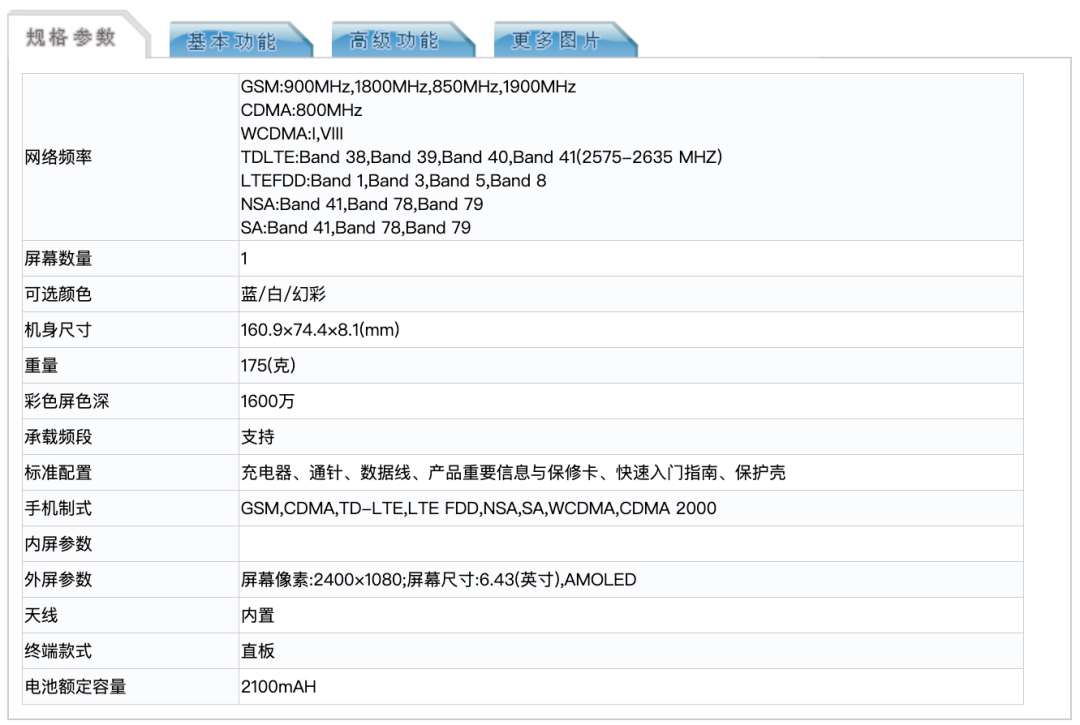 参数上,工信部显示,realme新机采用6.43英寸2400*1080分辨率的AMOLED屏,直屏,双电芯电池额定容量2100*2=4200mAh,机身三围160.9*74.4*8.1mm,重175g,提供蓝、白、幻彩3个配色,不保留3.5mm耳机孔。