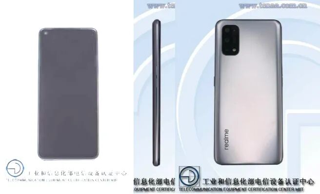 外观上realme新机采用左上角单挖孔屏,直屏,屏幕指纹,背部是银色后盖,左上角矩形模组。