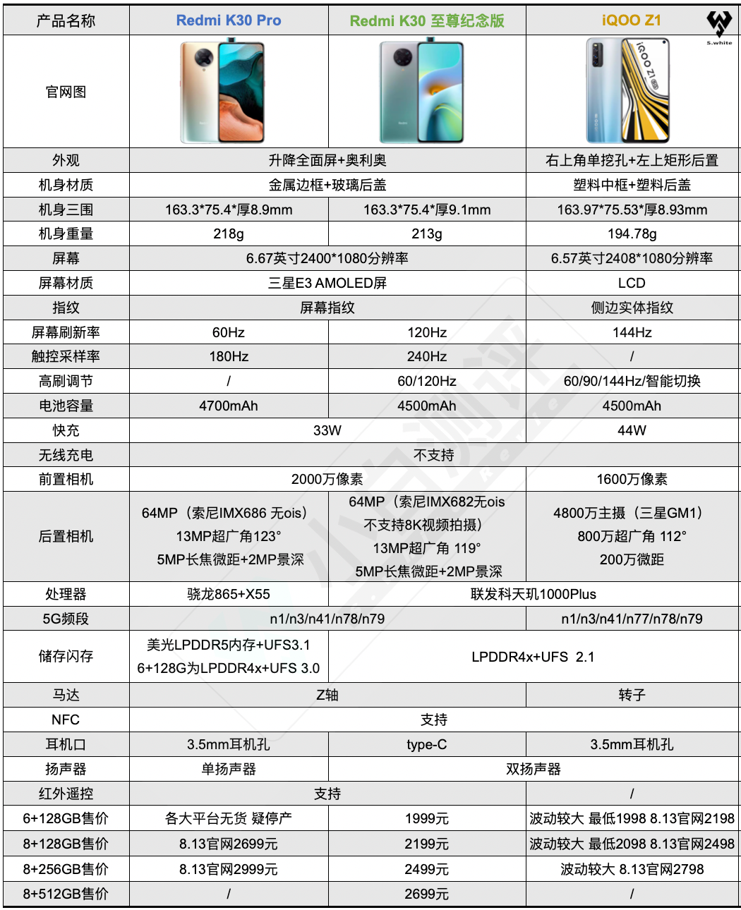 【新机】K30至尊版/Pro/iQOOZ1小白一图对比 你会选哪个?